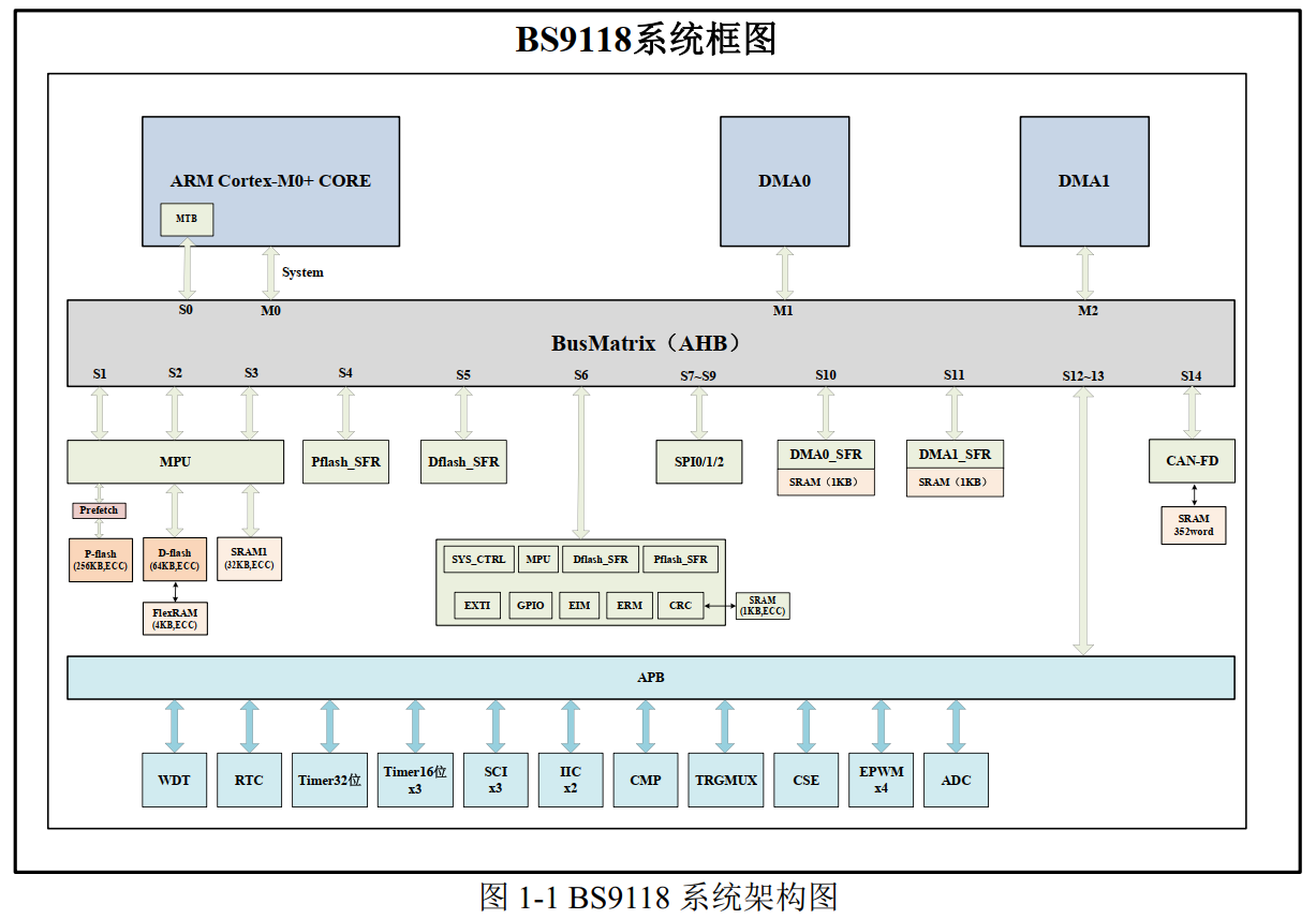 BS9018AMxx 车规级通用 MCU 系列采用高性能的 Arm® Cortex™-M0+的 32 位内核,最