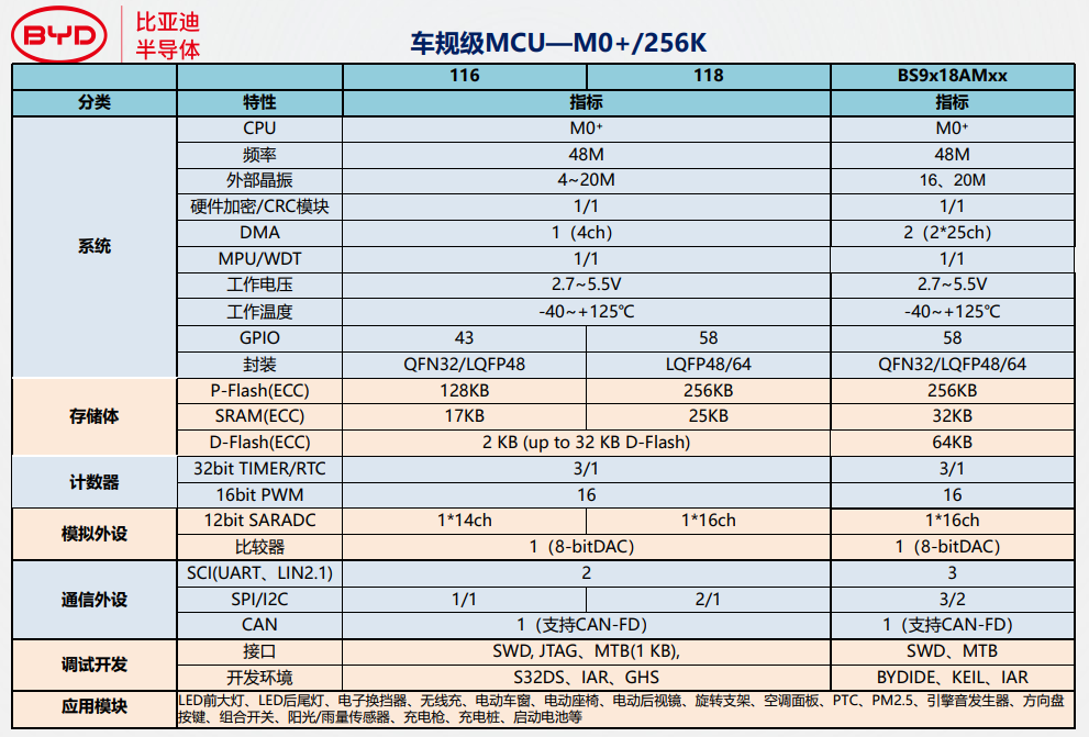 比亚迪半导体自主研发的M0+核国产车规芯片-BS9018上市了